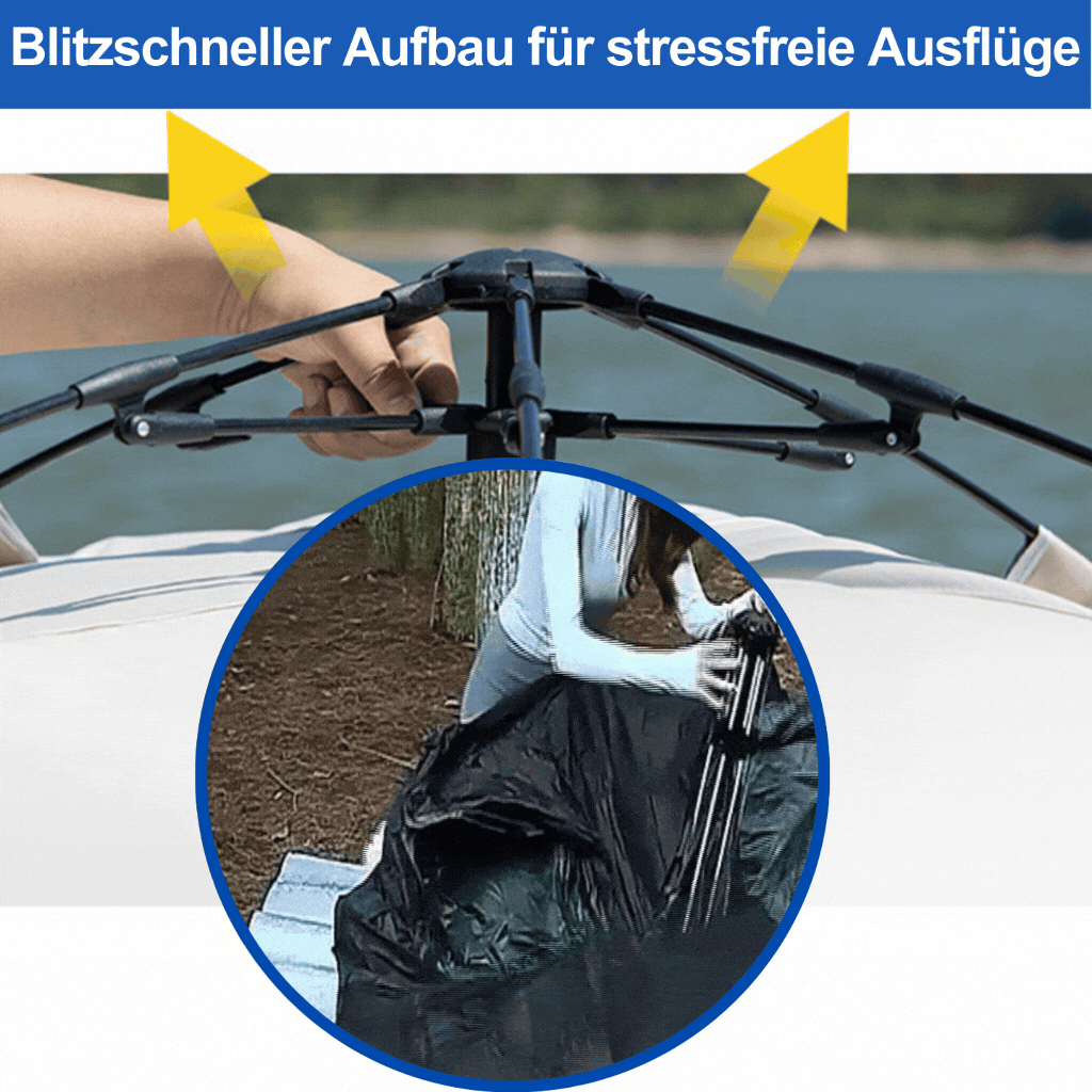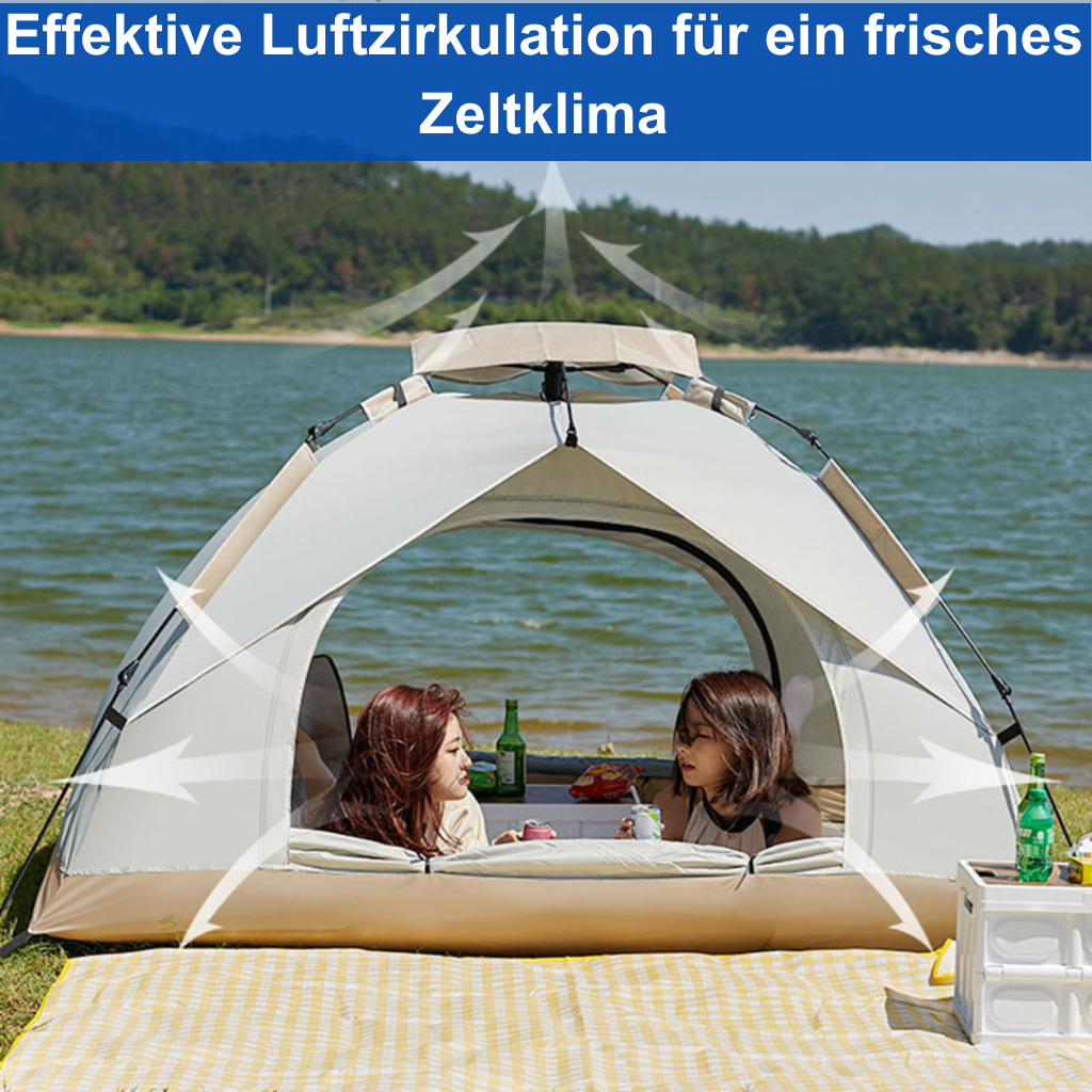 ergiss den komplizierten Zeltaufbau – mit QuickCamp™ genießt du maximale Freiheit und Komfort! Dank der innovativen Pop-Up-Technologie steht dein Zelt in Sekunden, ohne mühsames Stangengefummel. Ob Camping, Festival oder Wochenendtrip – dieses Zelt bietet dir Schutz, Platz und Komfort, egal wohin deine Reise geht.