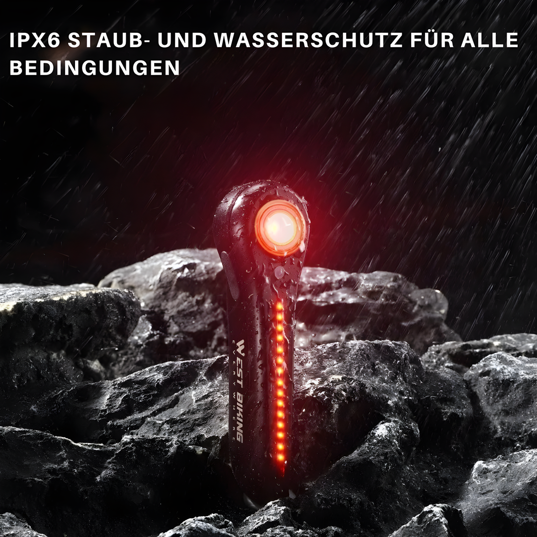 Mit sechs verschiedenen Modi, darunter Navigations- und Atemlicht, passt sich das Rücklicht Ihren individuellen Bedürfnissen an. Perfekt für jede Fahrbedingung.