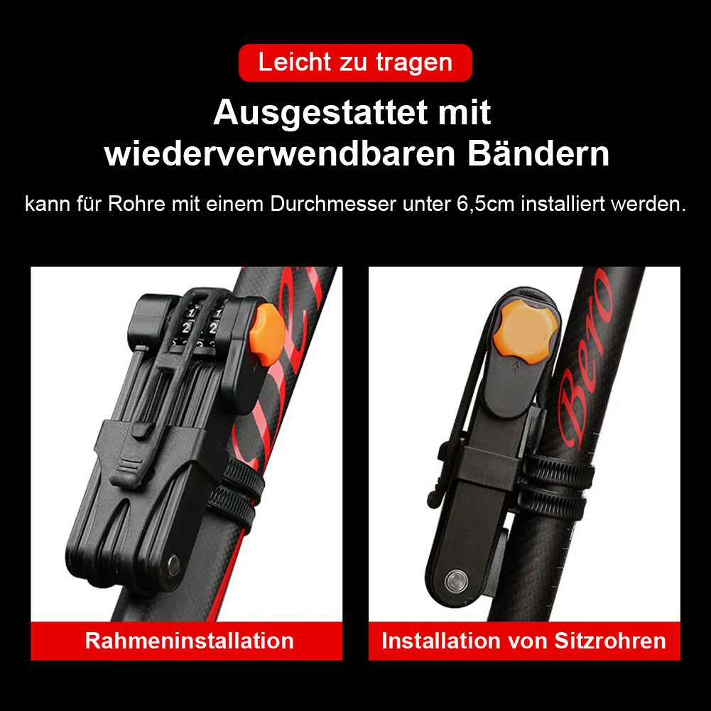 Sichern Sie Ihr Fahrrad oder E-Bike mit dem FlexGuard Faltschloss. Dieses innovative Schloss kombiniert robusten Legierungsstahl mit einem flexiblen Design, um maximale Sicherheit in einem kompakten Format zu bieten.